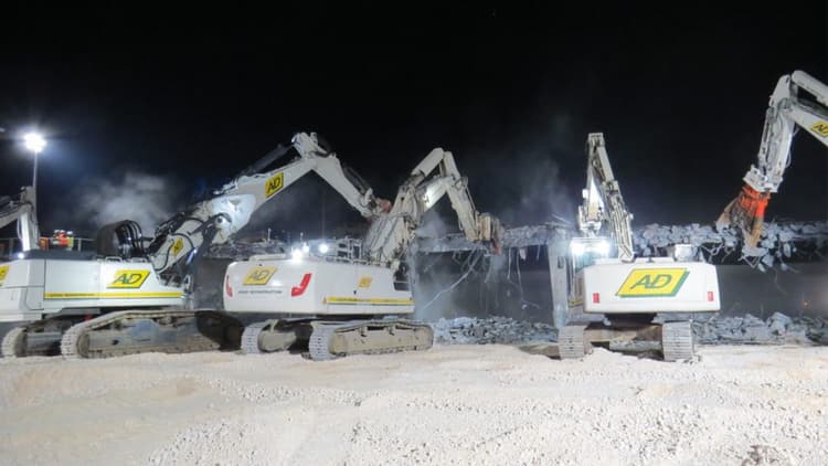 L’opération a été parfaitement réussie, suivie de près depuis une aire sécurisée avec food truck gratuit par les élus et riverains, dans une ambiance particulièrement conviviale. En outre, une attention exemplaire est apportée en matière d’environnement via le site de concassage et de tri sur la base vie du chantier, à Sainte Musse. Tout le béton et la ferraille récupérés de la démolition y ont été acheminés pour être recyclés, limitant ainsi l’impact carbone du chantier.