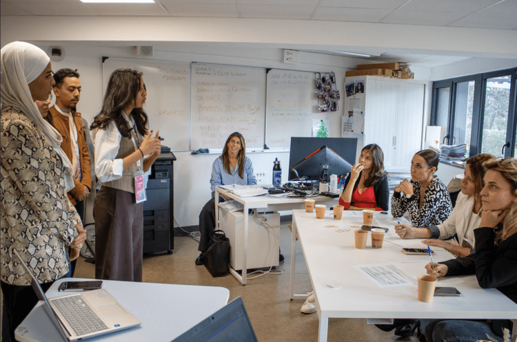 Autre nouveauté cette année, l’apparition de l’IA, Intelligence Artificielle, dans la construction des projets. Plutôt que de s’y opposer, ce qui irait à contre-courant de l’évolution de la société, il était important de mettre un cadre. Ce qu’a fait dans un premier temps Moustafa Marzuk, fondateur d’Utopia Formation. Lui-même « exemple » d’ascenseur social réussi, il a expliqué aux jeunes à quel point les cartes du monde économique sont redistribuées avec l’IA, tout en mettant en garde sur l’outil, certes formidable et dont il ne faut pas avoir peur, mais qui ne doit pas empêcher de penser et de laisser libre court à sa créativité.