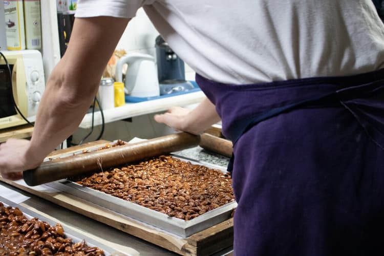 Du haut de cette pyramide de nougats, 140 années vous contemplent (!), aurait pu dire Bruno Adet dans sa présentation très pédagogique, en même temps qu’historique, du Nougat Jonquier. Aujourd’hui retraité, mais incarnant avec savoir, charisme et un plaisir non dissimulé la mémoire de sa famille, il a élargi voici une douzaine d’années en activité permanente une tradition saisonnière jusqu’alors, longtemps perpétuée par sa tante Monique, transmettant à son tour l’envie, la maîtrise du savoir-faire et l’entreprise à ses fils Vincent et Benoît.