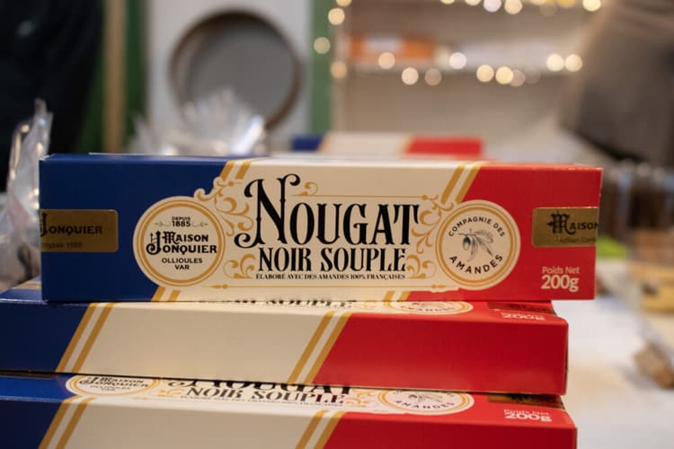 Si nombre d’ingrédients viennent de la région, les amandes sont importées d’Espagne pour l’essentiel, sauf pour la barre des 140 ans, en bleu, blanc, rouge, confectionnée avec la Compagnie des Amandes, à Brignoles. De bonnes suggestions pour Noël, période qui concentre 60% des ventes.