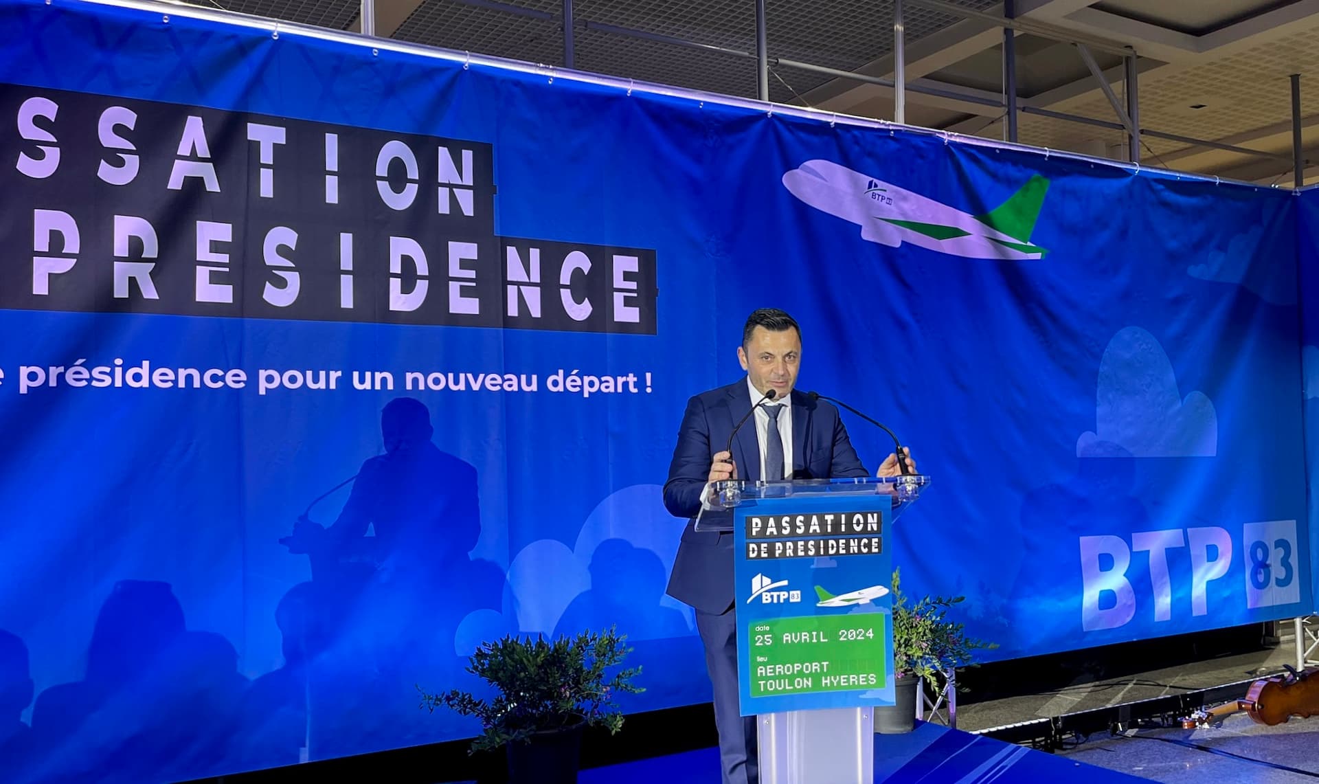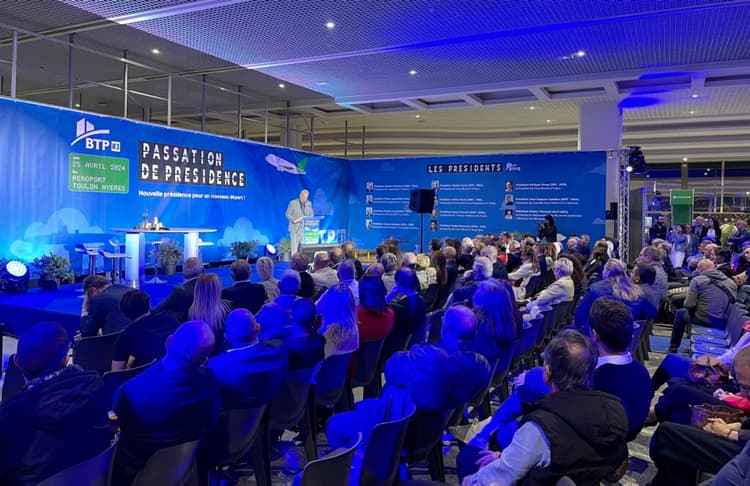 « J’ai 54 ans et suis père de 3 enfants. Je vis au Lavandou et mon entreprise est située à Bormes-les-Mimosas. Le Groupe Piersanti s’est formé autour de l’entreprise de maçonnerie-gros-œuvre créée par mon père en 1966 et, au fil du temps, plusieurs activités se sont naturellement greffées comme la promotion avec son espace de vente et une activité de location saisonnière. Si bien que toutes ces activités intégrées emploient aujourd’hui 60 salariés. Récemment, j’ai eu le plaisir de voir mon fils Sandro, me rejoindre. Il constitue la 3e génération et c’est une grande fierté pour moi. Sur le plan syndical, je suis président du Pôle Habitat FFB pour la région Paca Corse depuis novembre 2018 et également pour le Var. C’est à ce titre que je suis vice-président de la Fédération du BTP du Var. Mon élection à la présidence s’est déroulée le 11 décembre 2023 dans le cadre du conseil d’administration et depuis cette date, Jean-Jacques Castillon m’a associé à toutes ses décisions et à la plupart de ses activités ». C’est de cette façon sobre et avec une certaine émotion que Fabien Piersanti a pris la parole en qualité de nouveau président de la Fédération du BTP du Var, devant une assistance de plusieurs centaines de personnes réunies dans le hall d’embarquement de l’aéroport de Toulon-Hyères le 25 avril dernier. Un embarquement soigné, préparé et animé avec talent par le secrétaire général Cyril Bolliet.