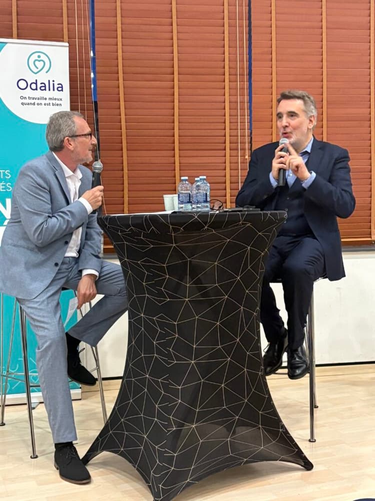 Le parrain de la soirée ensuite, à savoir Odalia, service de prévention et de santé au travail du Var, représenté par son directeur Yves Kerboriou, dont la souveraineté numérique se traduit par la protection des données confidentielles de 330 000 personnes et 33 000 entreprises ! Celui-ci a conté son cheminement vers la sérénité, conjointement à une démarche interne de formation en IA pour ses 250 salariés.