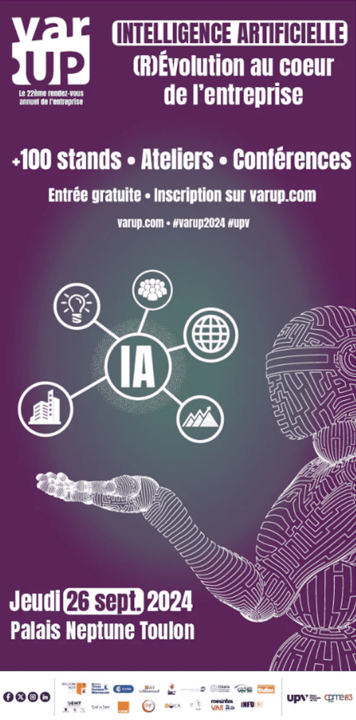 Le 26 septembre, l’UPV donne rendez-vous pour la 22e fois aux acteurs du monde économique varois afin de les rassembler autour d’un événement qui leur ressemble, consacré à l’entrepreneuriat. Véritable condensé de société(s), VAR UP est le grand salon annuel de l’entreprise dans le département, offrant la possibilité en un lieu, le Palais Neptune de Toulon, en un jour, de partager les savoirs et d’accompagner le changement. (R)évolution au cœur de l’entreprise, l’IA, Intelligence Artificielle, est la thématique phare de cette édition, avec de l’intelligence à tous les étages, en particulier au dernier à la faveur d’un village dédié aux experts du sujet, une première. Plus de 2 500 dirigeants et acteurs de la vie économique sont attendus durant toute la journée, autour de la centaine d’exposants et nombre d’animations diverses, parmi lesquelles la grande conférence de l’économiste et universitaire Philippe Dessertine dès 9h30.