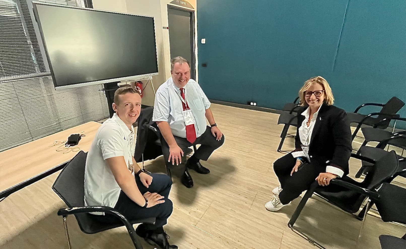 Tandis que les stands, ateliers, conférences et échanges divers de Var.UP battaient leur plein dans le Palais Neptune de Toulon, un riche moment de partage et de réflexion s’est organisé en aparté et en toute décontraction entre Pierre Kuchly, vice-président national de la CPME, Véronique Maurel, présidente de la Confédération dans le département et de l’Union Patronale du Var, et Marc-Antoine Moché, secrétaire général de l’UPV.